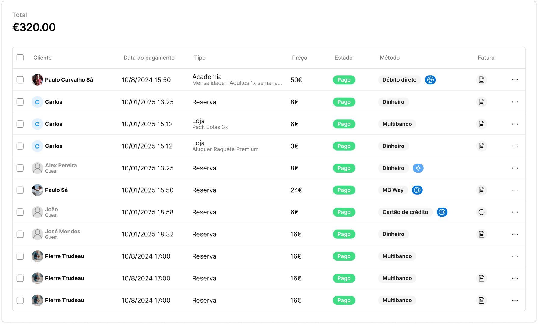 Pagamentos e faturação integrados